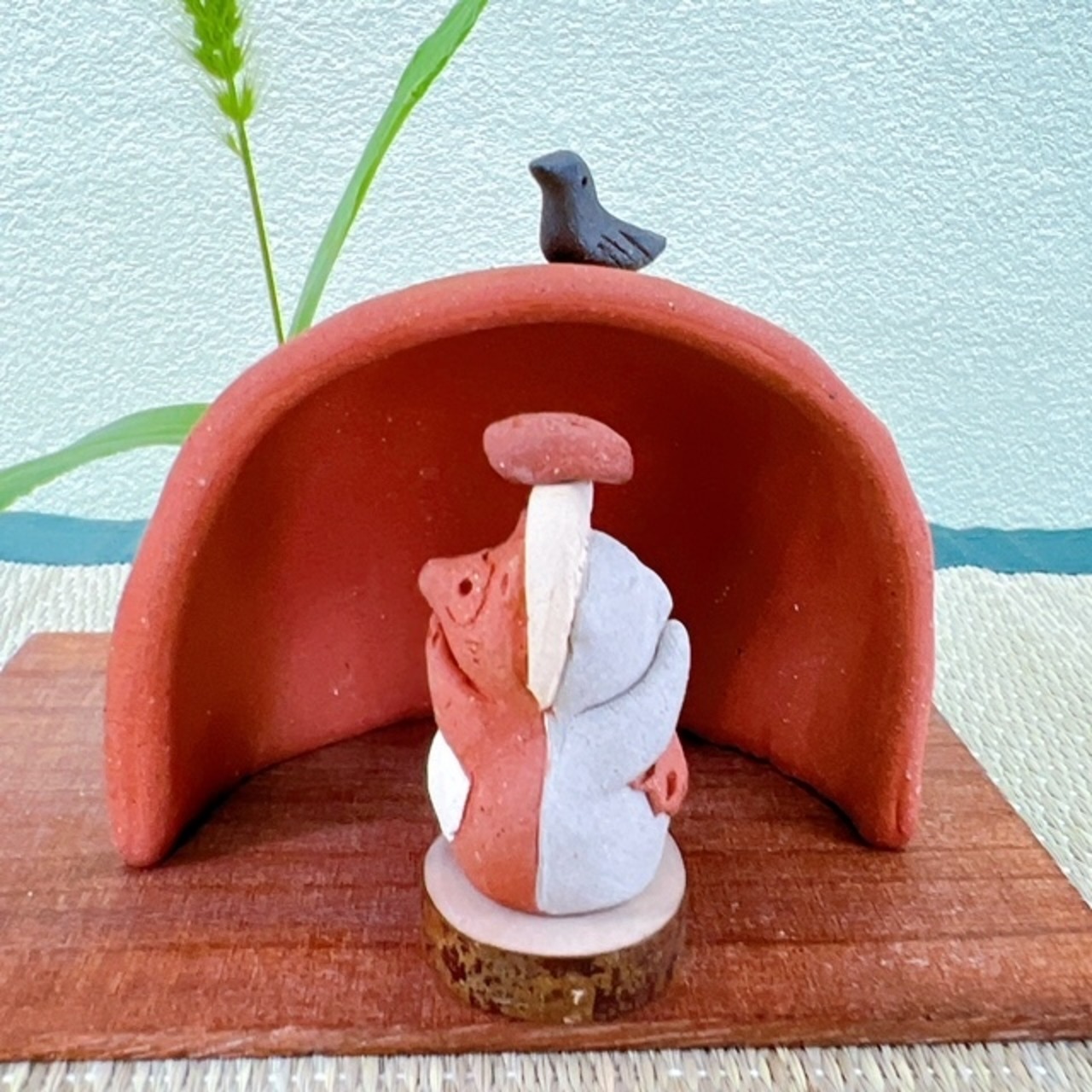 セット内容と材質:洞穴、変身たぬき、葉っぱ、カラス(信楽焼)