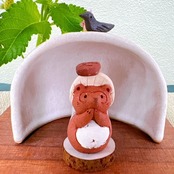 全て手作りだからこそ、みんなそれぞれにお顔が少し違う、味のある変身たぬきが出来ました。画像とは若干色味などの違いもあると思います。ウッドプレートは、実際とはサイズが異なる事がありますがご了承ください。