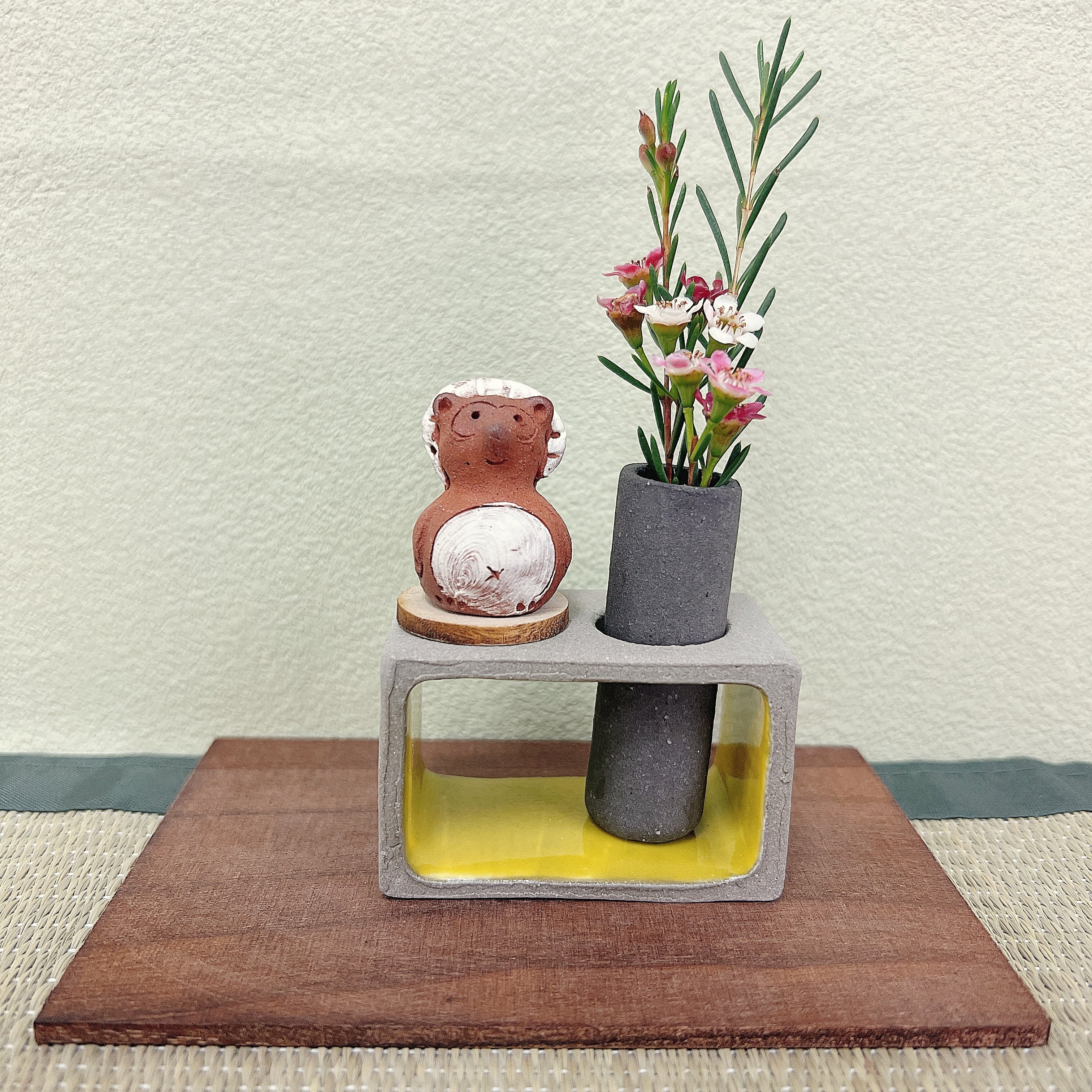 セット内容と材質:口型一輪挿し、花瓶は信楽焼